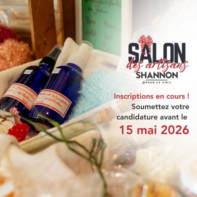 Les inscriptions pour le Salon des artisans de Shannon 2026 sont officiellement ouvertes! Inscrivez-vous directement au shannon.ca/salon-des-artisans-de-la-ville-de-Shannon. Pour toute question à ce sujet, contactez le Service des loisirs au 418 844-3778 / loisirs@shannon.ca.