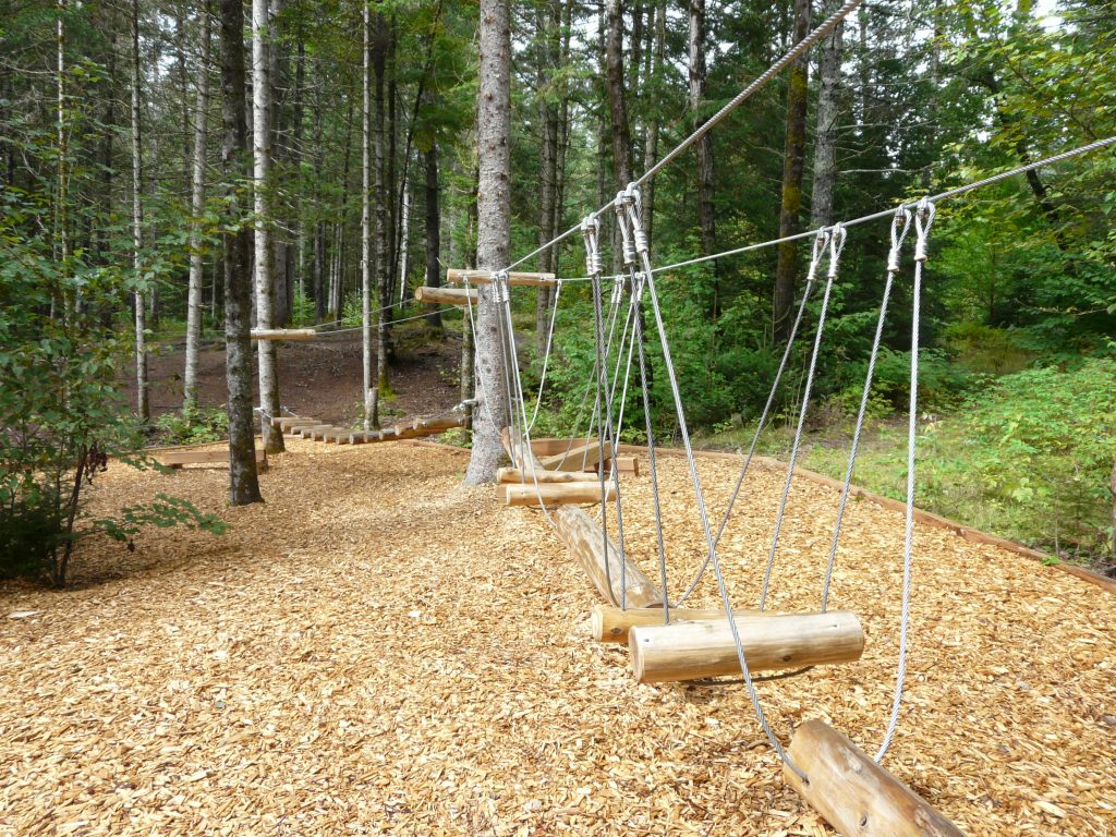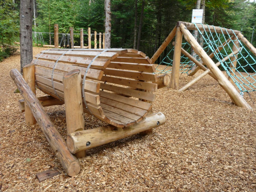 Monsieur Steve Desbiens, de Créations dans les arbres, a réalisé le parcours qui comprend 16 modules. Le parcours s’adresse à une clientèle familiale, et la présence d’un adulte est fortement suggérée pour les plus petits.